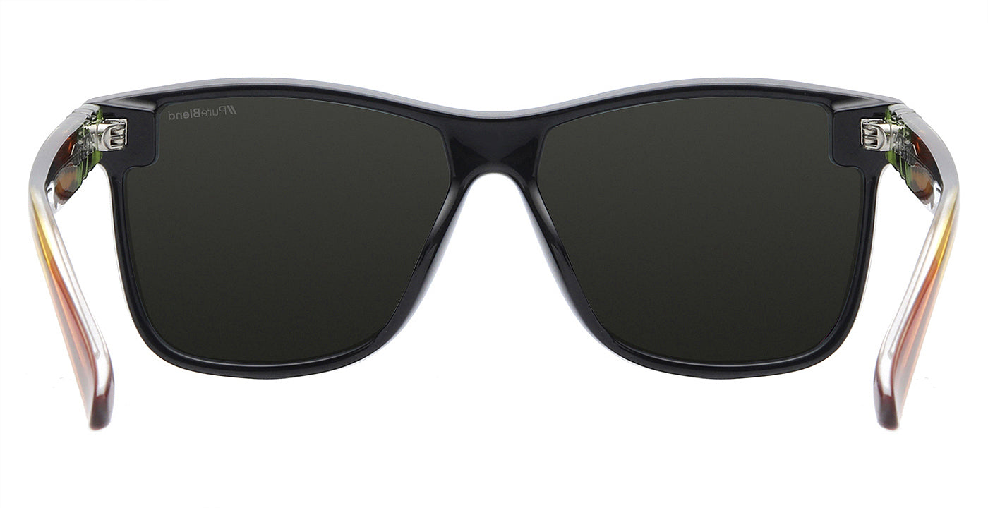 Energize your look with ‘Amber Fusion.’ We’ve spiced up the wear-anywhere versatility of its black frame with a fusion of colors at the temples – crystal clear green and blue with hues of honey and amber. See that shining metal core? It enhances fit and feel. And with the superior scratch resistance and clarity of our polarized PureBlend Lens, these shades deliver style and substance in spades. //