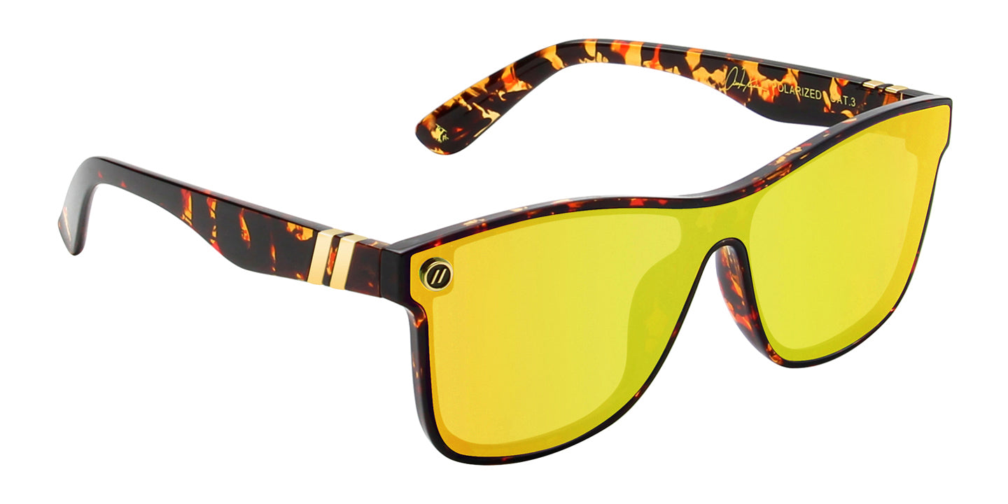 2x world-champion skimboarder and pro wakesurfer, Austin Keen, has always advocated a #LifeByDesign, so it’s fitting he team with Blenders for a pair of shades that embody high fives and good vibes. Stunning, spirited, and stylish, the ‘Austin Keen’ take the exceptional quality of the flat-lens ‘Millenia X2’ collection and deliver an all-world aesthetic. The colorway crushes it from start to finish, with your choice of smoke or gold mirror polarized lenses framed by a gloss crystal brown tortoise pattern that extends down the temples, ending in Austin’s signature in gold foil. You’re gonna be riding a wave of good fortune every time out with these on!