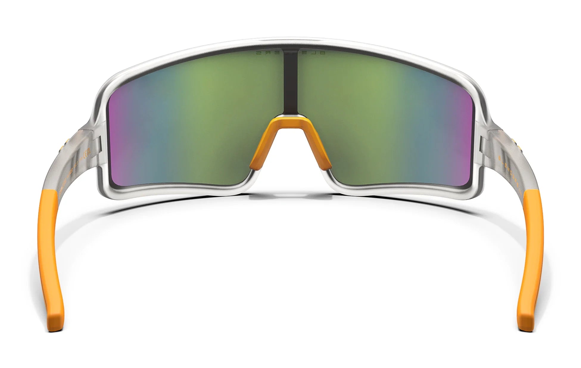 Set the pace with the fast-lane fashion of ‘Saturn Cloud.’ These wraparound sunglasses-Blenders’ first-represent the perfect fusion of activewear and lifestyle design. They deliver full face protection and polarized lenses for enhanced clarity, putting you at your best every time out. And the colorway crushes it, with an extraordinary half-transparent clear frame, two-tone temples, and glowing orange lens. You’re about to set a personal record for style! //