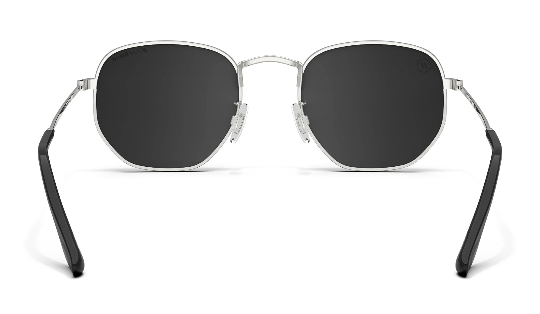 Your best begins with Blenders, so start your day with ‘Sterling J.’ These ‘Hexagram’ shades stun with a standout shape, stainless steel frame, and our premium, polarized PureBlend Lens for superior scratch resistance. The silver-and-smoke scheme pairs with all your fits – and of course, our laser-etched logo is present to remind you to live Life in Forward Motion. //